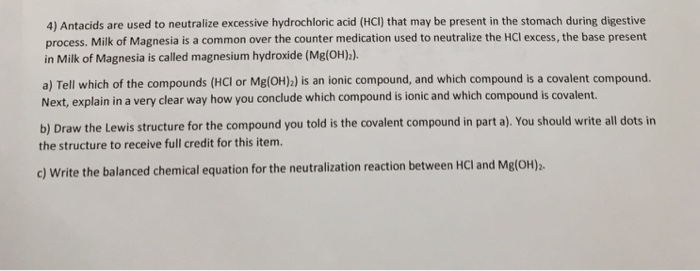 Solved Antacids Are Used To Neutralize Excessive Chegg Com